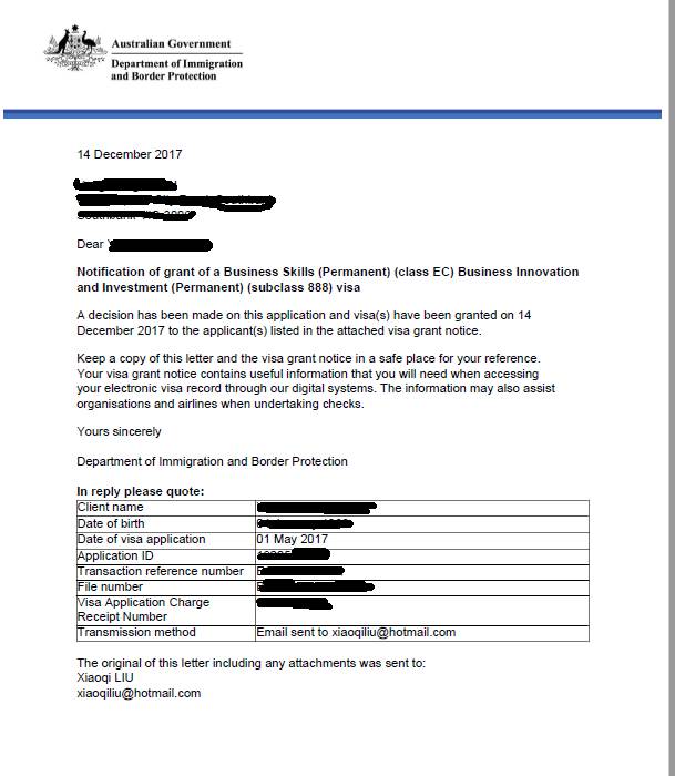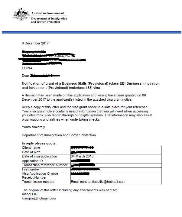 第二个难点在于已经成年的子女,在递交的时候L先生有一个超过18岁的女儿在海外全职读书,由于海外汇款不是从客户自己的账户,而是从客户全资公司汇款,常春藤移民提供了详细的公司记录和客户陈述,以及在递交之前一年孩子财务未独立的记录给移民局,最终通过了移民局的审理,全家一起获得188A签证!