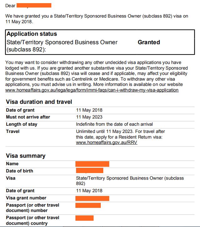 恭喜2018年5月H先生全家顺利获批892州政府担保商业永居签证