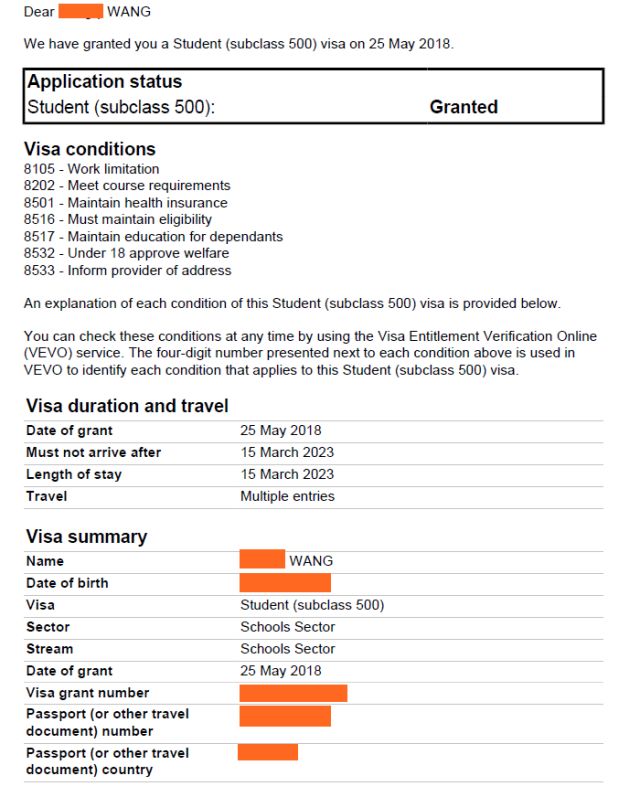 王同学与家人经朋友推荐以及多次来澳洲对中小学进行考察之后,彻底为墨尔本的环境、人文、教育体系等折服,于是,王同学的妈妈决定陪王同学一起来墨尔本读初中。我们为王同学精心挑选了几所学校,并成功被心仪学校录取,经过一个月的材料准备与等待,王同学的学生签证和妈妈的陪读签证都顺利下签,近日即将抵达墨尔本。
